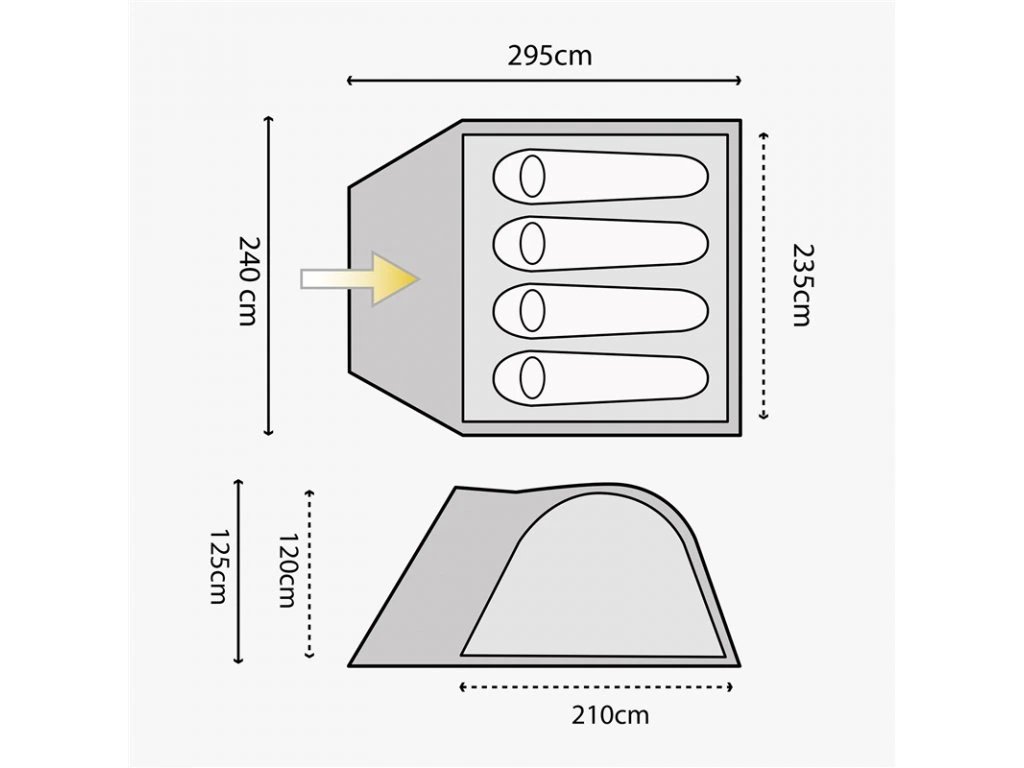 Dvouplášťový stan pro 4 osoby konstruovaný tak, aby byl pohodlný pro pobyt v kempu a zároveň aby se rychle a jednoduše stavěl a balil, byl lehký a nezabral moc místa v autě. Stan poskytuje dostatek místa pro osoby i zavazadla. Velký vchod a vnitřní výška 120 cm poskytuje dostatek pohodlí. Samonosná konstrukce zajišťuje dobrou stabilitu ve větru. Vhodný pro turistiku a kempink.