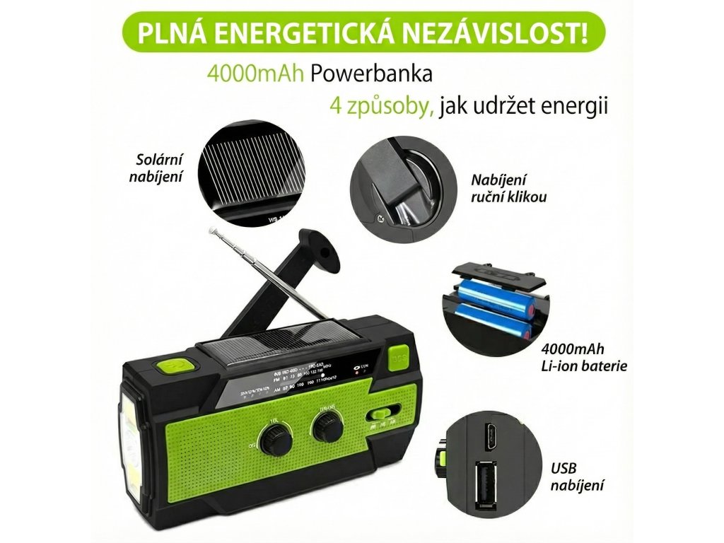 Toto rádio je spolehlivým pomocníkem pro outdoorové aktivity i krizové situace, kdy je důležité mít přístup k informacím a zdroj energie pro elektronická zařízení.