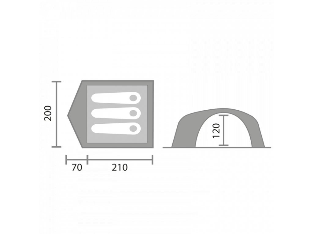 Dvouvrstvý stan s předsíňkou pro 2 - 3 osoby se samonosnou konstrukcí, vhodný pro kempování, turistiku a cyklistiku.