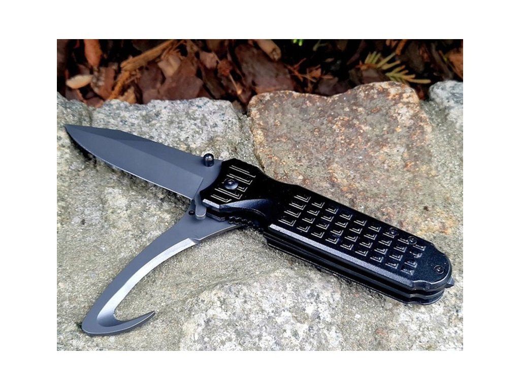 Pokud hledáte univerzální taktický zavírací nůž, který zvládne běžné řezání i rychlé přeříznutí popruhů či textilu, kombinace hladké čepele a háku je praktická volba.